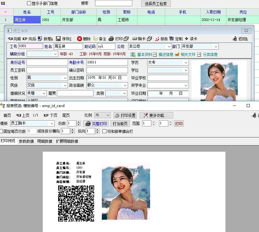 生成的二维码可以通过图片控件直接在人事资料里显示