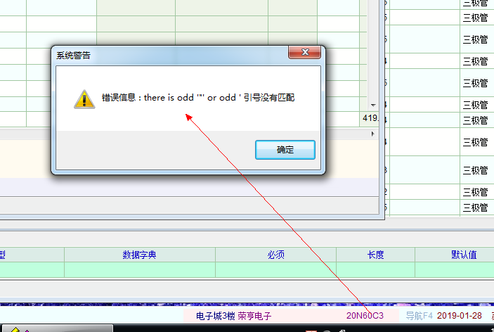 1-28最新版本通过右下角的功能栏打开产品定义页面时弹出系统警告,请问如何解决?