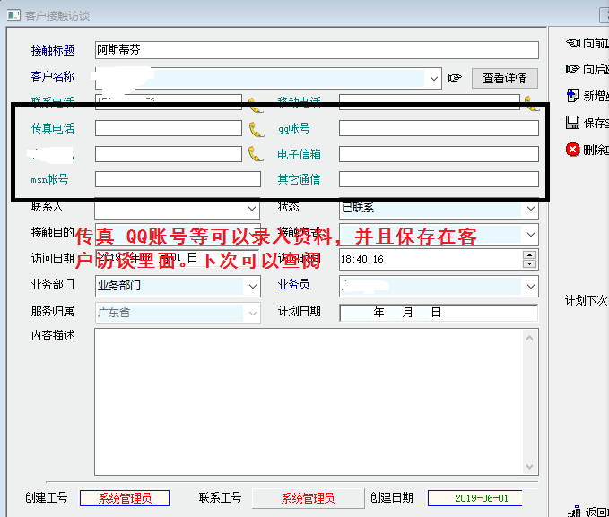 希望客户访谈对话框的电话,MSN 客户等地方可以人工录入数据。