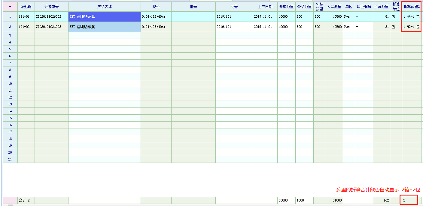 孟老师, 目前系统单据的折算数量合计只支持单一折算单位,且只有合计数量,没有像明细一样将折算数量和折算单位一起并列显示, 老师是否可以修正折算合计列支持多单位的折算数量和折算单位一起显示,谢谢!