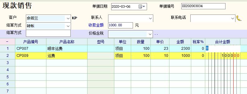 当添加产品,单价,数量后,得出合计金额后,想更改下合计金额,发现,改了后不能自己计算。如果是在含税的时候,这个就会出现金额误差,对不上,不能自动计算,如果填上自己的合计总金额,单价不能变的情况,这个单据就会存在错误,下单给客户,或者是后面,自己查账也会对不上。