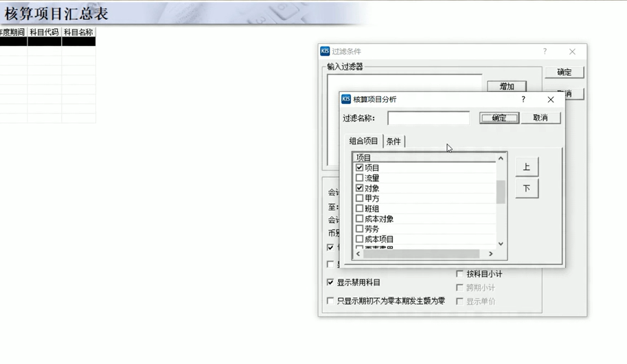 想启用【表外科目】并为这些科目添加一些自定义的辅助核算项目,并支持双选或多选。
