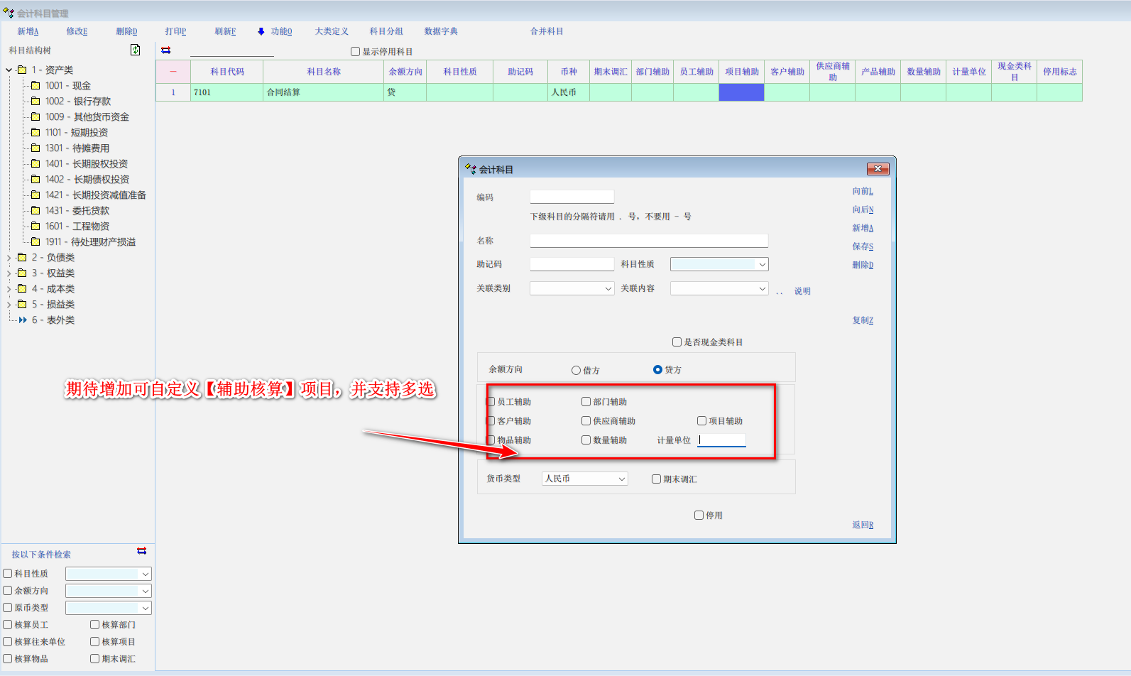 讨论_【会计科目】设置中已经有常用的【辅助核算】项目分类,能否添加自定义添加新的辅助核_想到就说